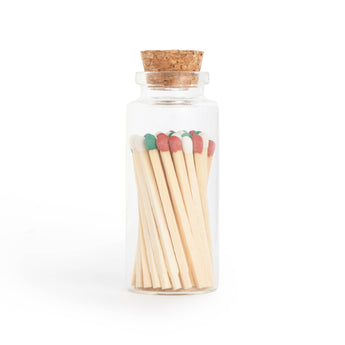 Light up your space with color tip matchsticks! Our colorful matches will add a spark of joy to any moment- with many vibrant color options. The corked vials are hand-filled in our studio and come with a handy match striker so you can light up your favorite occasion anytime.