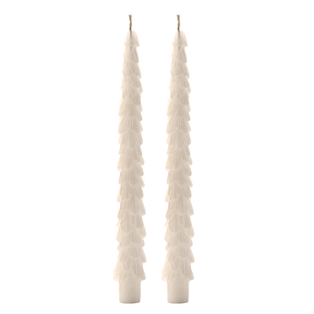 ITEM DETAILS: • Set of 2 • 10" unscented candles • Design: Cream Tree • Non-metal, non-toxic, lead free • Gluten Free, phthalate free • 100% cotton wick - lead and zinc free • Self-fitted to position into candle holders • 6.5+ hours burn time •