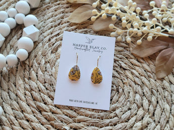 Harper Klay Co's Mustard Yellow Teardrop Set is a fashion-forward polymer clay earring set that brings a touch of fall to your wardrobe. The distinct teardrop shape makes it a standout piece in any jewelry collection. These earrings represent two years of meticulous design and refinement.